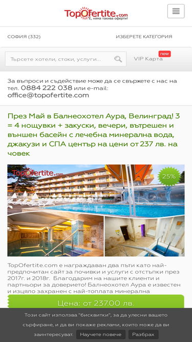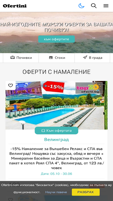76%топ оферти за хотели, спа почивки, екскурзии и услуги! номиниран за най-предпочитания сайт за отстъпки! не плащай повече и резервирай сега!