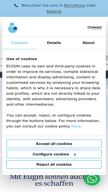 98%Mit Eugin können auch Sie es schaffen Wir bieten Ihnen die medizinische Behandlung und die psychologische Betreuung, die Ihrer persönlichen Situation am besten entsprechen: Zukünftige Mutter und zukünftiger Vater Zukünftige Mutter Alleinerziehende Mutter sein Vitrifikation von Eizellen