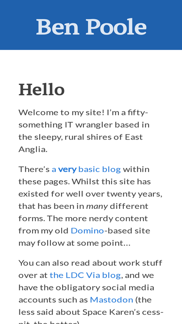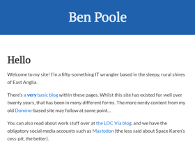 the website for ben poole, a uk-based software developer, it consultant, and director of the legacy application data specialists, ldc via ltd.