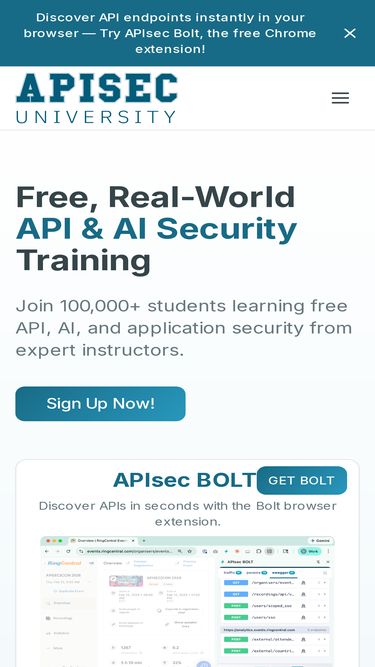 73%Learn API security and cybersecurity with free courses from APIsec University. Join over 100,000 students worldwide.