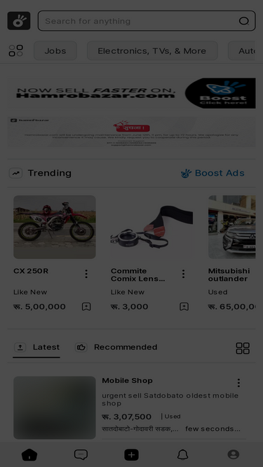 82%Hamrobazar.com is Nepal's No. 1 Marketplace which enables to list wide variety of new or used product online. We at hamrobazar.com believe that Internet is a great promotional vehicle as well as communication channel for connecting buyers and sellers. Hamrobazar.com is perfect solution which helps to list your products and find great deals.