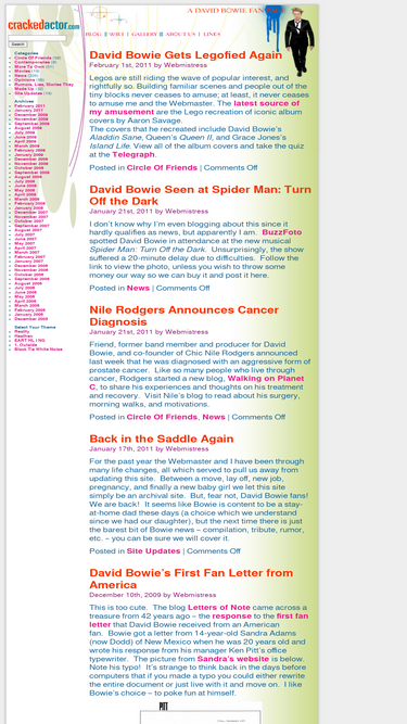95%crackedactor.com is a david bowie fan site featuring a a blog, photo gallery, and wiki.