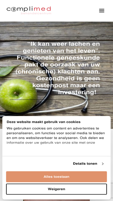73%Complimed is een behandelcentrum gespecialiseerd in complementaire en reguliere geneeskunde. Ons doel is om zeer specifieke lichamelijke klachen op een natuurlijke wijze op te lossen. Neem contact met ons op voor een intake gesprek om te bekijken wat voor u kunnen betekenen.