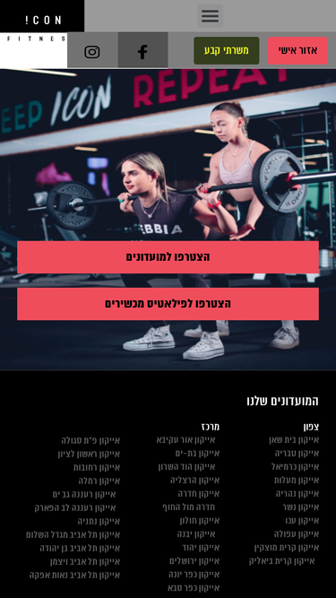 רשת חדרי כושר יוקרתיים עם מתקנים מפוארים בעל סטנדרט גבוה, צוות מאמני כושר שידחפו אתכם לשיא ואווירה מנצחת! מצאו חדר כושר בסביבתכם. מגיע לכם להיות אייקון!