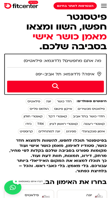 78%באתר פיטסנטר תמצאו מאות חדרי כושר, מאמני כושר, סטודיואים ומגוון אימוני ספורט בהשוואה קלה ונוחה לפי מחיר, דירוג, חוות דעת, מיקום ועוד.