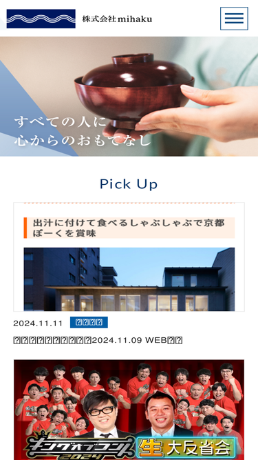 85%日本料理・しゃぶしゃぶ「京都 瓢喜/京都 瓢斗」を運営する株式会社mihakuの企業サイトです。会社概要、企業理念、採用情報などを紹介しています。