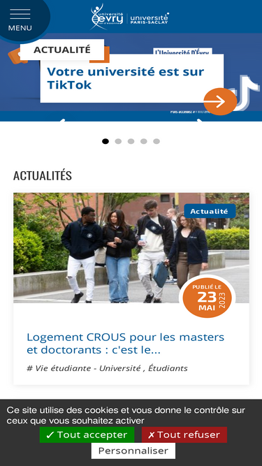 100%L’Université d’Évry dispense des formations dans la plupart des disciplines (hors médecine) de la Licence au Doctorat. Elle développe également des filières professionnalisantes en lien étroit avec le monde socio-économique, ce qui la hisse très vite au premier rang des universités françaises en nombre d’étudiants apprentis de l’enseignement supérieur.
