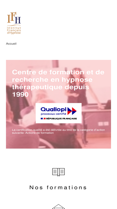 100%L’Institut Français d’Hypnose (IFH), centre de formation en hypnose pour professionnels de santé fondé en 1990. Certifié Qualiopi.