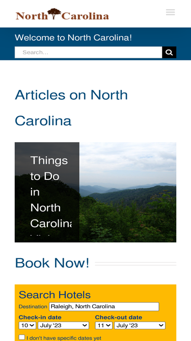 88%Welcome to North Carolina! Your travel guide to the hotels, dining, events, and things to do all over the state of North Carolina.