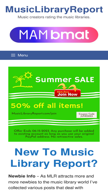 Music Library Report. Established in 2009 it has become the go to website for music composers for information on music libraries.