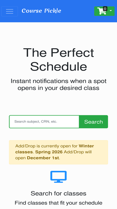 72%The Perfect Schedule! Instant notifications when a spot opens in your desired class