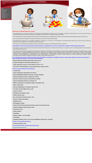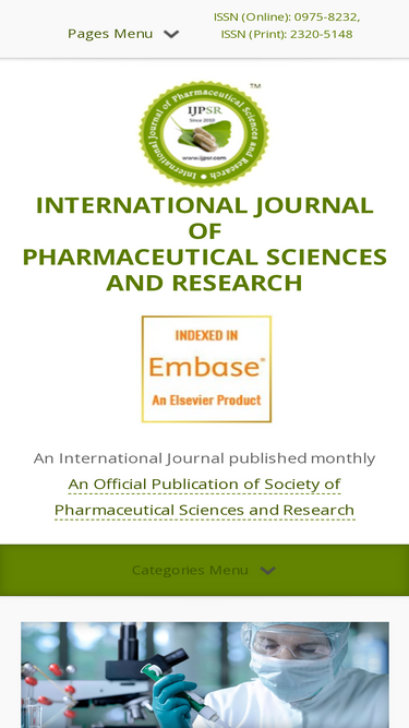 83%international journal of pharmaceutical sciences and research (ijpsr) is an official publication of society of pharmaceutical sciences & research. it is an open access online and print international journal published monthly. website: www.ijpsr.com projected impact factor (2012): 2.44, icv 2012: 5.50, 2011: 5.07, 2010: 4.57 doi: 10.13040/ijpsr.0975-8232 sj impact factor (2012): 3.226 global impact factor (2013): 0.533, (2012): 0.452 indexing - embase- elsevier's