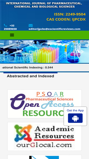 74%International Journal of Pharmaceutical, Chemical, and Biological Sciences is an open-access, multi-disciplinary, peer-reviewed journal published quarterly.