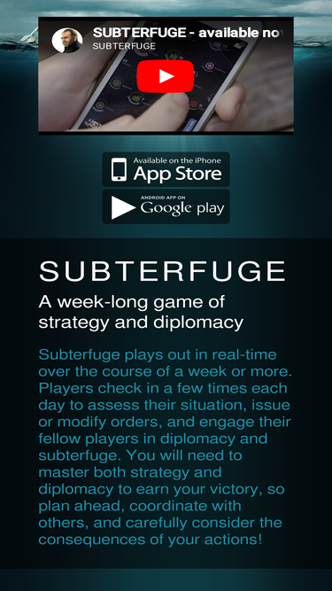 63%subterfuge - a week-long game of strategy and diplomacy.