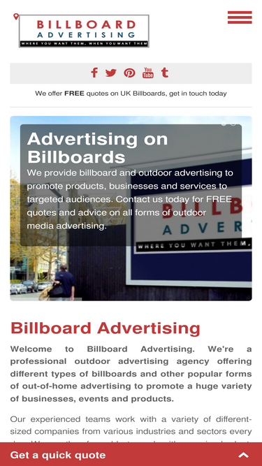 100%if you are looking to promote your business or product on brilliant billboards, contact us today for free quotes and great value for money. we have years of experience across the whole of the uk offering professional guidance and great rates.