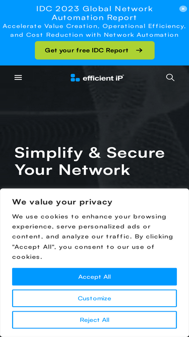 63%EfficientIP enables Network Automation and strengthens DNS Security with DDI services to control and secure anywhere access to your enterprise applications.
