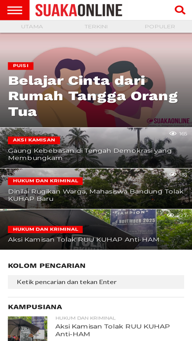 85%SUAKAONLINE.COM – Puluhan massa yang terdiri atas warga, kawan solidaritas, serta tim advokasi menggelar aksi solidaritas di depan Sekolah Tinggi Bahasa Asing (STBA) Yapari, Jl. Cihampelas, Kota Bandung, Jumat (10/10/2025). Aksi tersebut merupakan bentuk solidaritas terhadap Ve, yang diduga menjadi korban salah tangkap serta korban penyiksaan yang dilakukan oleh aparat kepolisian daerah Jawa Barat. Dalam […]