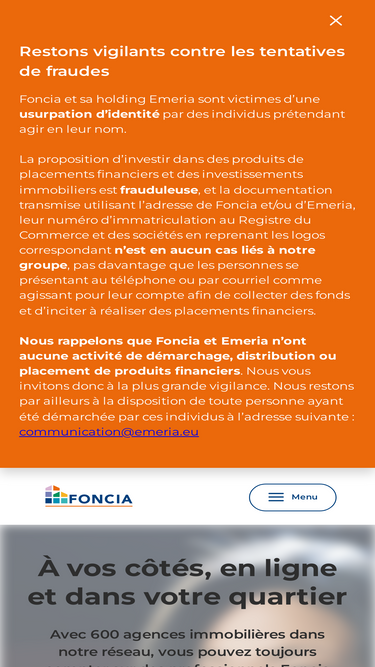 86%Tout l'immobilier Foncia : annonces en achat immobilier et location de nos 500 agences, estimation et vente immobilière, gestion locative de votre bien, syndic de copropriété, location de vacances, investissement, espace client MyFoncia, déménagement,...