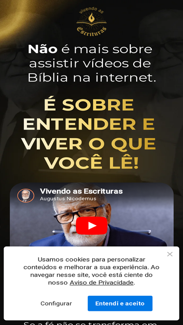 95%Criada por Augustus Nicodemus, o Vivendo as Escrituras é uma comunidade online onde milhares de cristãos têm redescoberto o poder transformador da Palavra, com profundidade, estrutura e acompanhamento real.