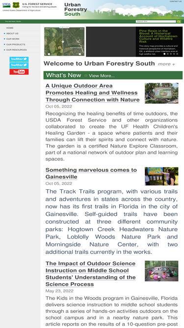 100%urban forestry south focuses on technology and information that supports urban forest management, tree health, tree biology, the measurement of ecosystem benefits derived from trees in urban settings, urban nature and human health, children and nature connections, and heightening awareness of and providing information about wildland-urban interface issues in the south and nationwide.