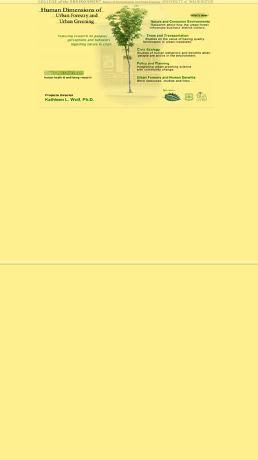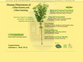 100%human dimensions of urban forestry and urban greening. featuring research on peoples' perceptions and behaviors regarding nature in cities. research projects director: kathleen l. wolf. phd.