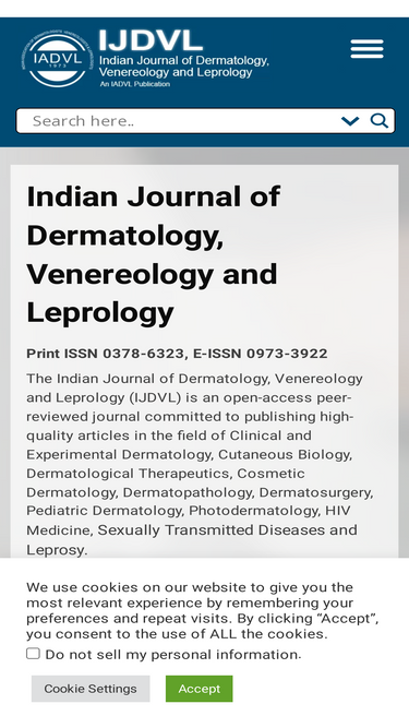 96%The Indian Journal of Dermatology, Venereology and Leprology (IJDVL) is an open-access peer-reviewed journal committed to publishing high-quality articles in the field of Clinical and Experimental Dermatology, Cutaneous Biology, Dermatological Therapeutics, Cosmetic Dermatology, Dermatopathology, Dermatosurgery, Pediatric Dermatology, Photodermatology, HIV Medicine.