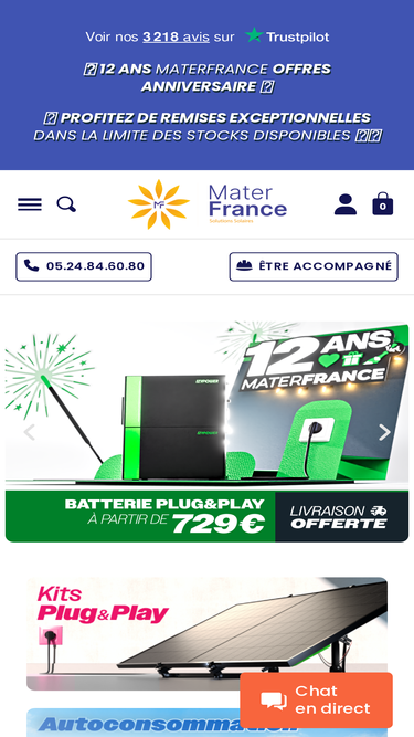 93%Materfrance, n°1 des kits solaires Plug & Play et autoconsommation. Simples à installer, puissants, conçus pour répondre à tous les besoins d’énergie solaire.