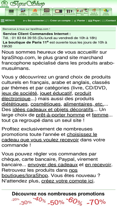 89%iqrashop.com est un site marchand spécialisé dans le produits culturels islamiques en langue française et arabe (livre, logiciel, cédérom, cassette audio & vidéo, articles musulmans).