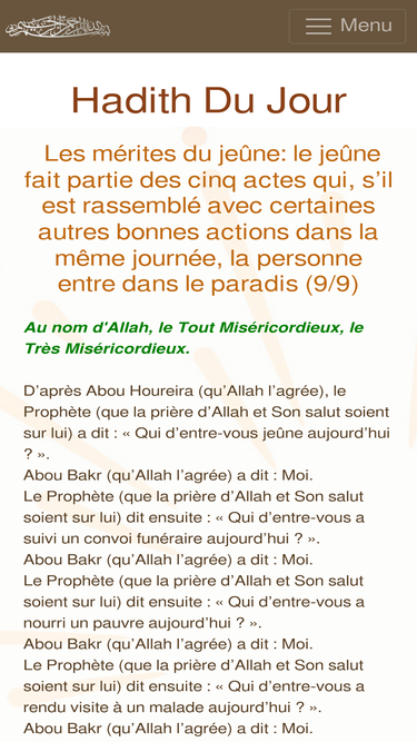 87%hadith du jour, recevez un hadith par jour par email. service hadith du jour, la science des hadiths et de l'islam tous les jours inchaallah.