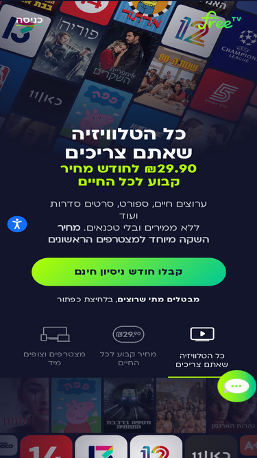 freetv - החופש בידיים שלכם. פרי טי וי, שירות הטלויזיה החדש עם כל הערוצים והספורט שאתם צריכים בהתחברות קלה במיוחד, ללא טכנאי, ללא ממירים ובאיכות וידאו מעולה.