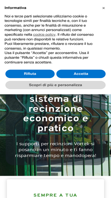 100%Vortek è il sistema migliore per recintare un terreno in modo economico! Vortek si posa in un minuto e ti fa risparmiare il 95% di manodopera.