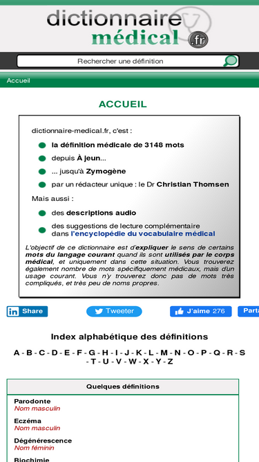 ce dictionnaire médical comporte un grand nombre de définitions liées au monde de la médecine : les termes techniques et l'utilisation médicale des mots du langage courant.
