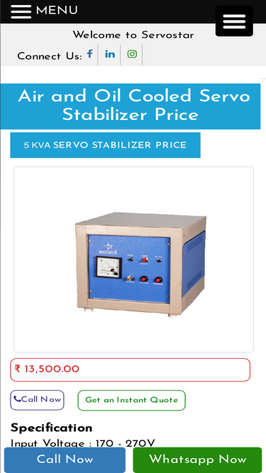 91%Servo Stabilizer - Servo Star India is the leading servo voltage stabilizer manufacturer and supplier in all over India. Our anual servo voltage stabilizer is ISO: 9815-94 tested. Buy the servo voltage stabilizer and other power conditioning products for a safe and better future.