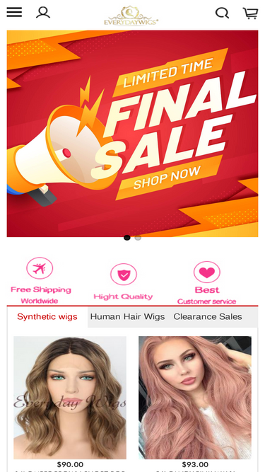 93%Everydaywigs is the best wig store for women, At Everydaywigs you can buy quality lace front wigs, a variety of synthetic wigs, and human hair wigs, Fast and Free Shipping worldwide
