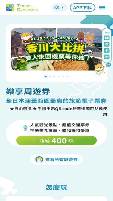 74%全日本涵蓋範圍最廣的旅遊電子票券,人氣觀光景點、超值交通票券、在地美食推薦、購物折扣優惠。