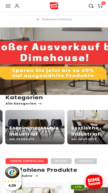 75%Dimehouse ist der richtige Ort für Ihre neuen Möbel! Verschiedene Stile, Farben und Geschmacksrichtungen und alles ab Lager verfügbar! Mehr als 200.000 Kunden sind Ihnen vorausgegangen!