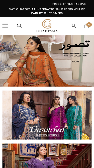 86%Welcome to Charizma Online Store. Shop for the latest fashion trends. Buy unstitched or stitched collections, ready to wear pret, luxury formals, bottoms and more.