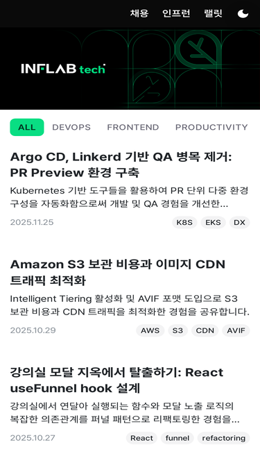 97%안녕하세요 인프랩의 향로입니다. 인프런 서비스는 2022년 1월 3일 ~ 17일까지 지속적으로 서비스를 사용할 수 없는, 역대급 장애가 발생했습니다. 이번 장애 기간동안 정말 많…
