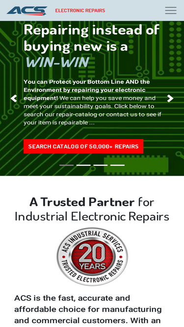 acs provides electronics repair for damaged electronics equipment. reliable service, free evaluations, 2-year warranty. call today 800-605-6419.