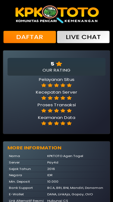 83%Kpktoto telah menjadi bo toto macau terbaik yang menawarkan bonus harian terbesar. Dengan memainkan toto macau 4d di situs lotto resmi Kpktoto anda akan terima banyak keunggulan dan pelayanannya yang super ramah.
