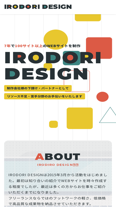 87%IRODORI DESIGNはWEB制作会社・デザイン会社様向けの下請け・外注・制作パートナーのフリーランスです。リソース不足や自社で対応できない内容のお手伝いをさせていただきます。コーディングだけやWordPressだけのご依頼も可能です。岐阜在住ですが東京・大阪・名古屋など全国どこからでもご依頼可能です。