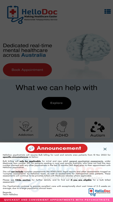 high quality, affordable psychiatrists and mental health professionals via secure telehealth video consultations across australia. specialising in adhd testing or assessment and treatment services.