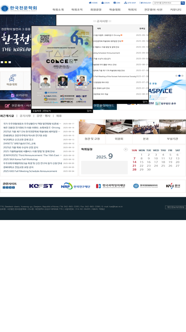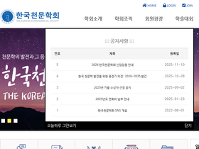 [학회소개, JKAS 및 PKAS, BKAS 학술지, 학술행사일정, 천문용어 검색 제공.]