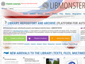 73%либмонстр. крупнейшая библиотека рунета. хранение авторских коллекций. сайт для педагогов, ученых, писателей. самиздат. научная деятельность. опубликовать статью, книгу, прозу или стихи бесплатно.