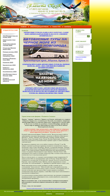 100%туристическая компания планета сказок-надежный и опытный поставщик вашего отдыха. экономичные туры по россии и зарубеж, автобусные туры на юг, горящие туры, базы отдыха нижегородской области, речные круизы-жмите сюда, даем хорошие скидки!