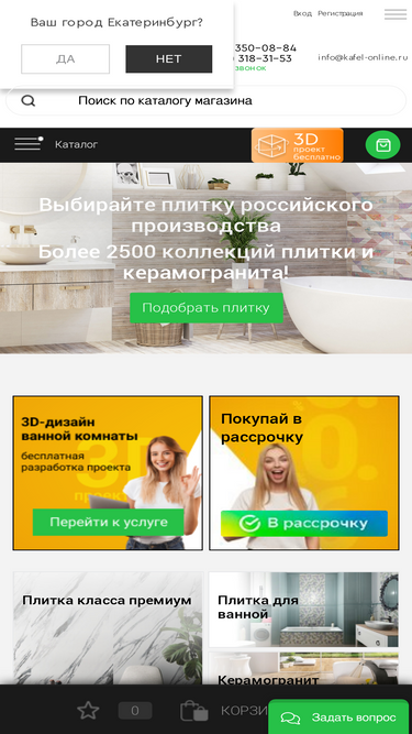 100%нужна керамическая плитка? заходи! ✓ наша цена на 10% дешевле магазинов в екатеринбурге ❖ бесплатный 3d-проект, каталог коллекций. ❖ доставка в любую точку города, по области, по регионам рф. ☎ +7 (343) 318-31-53