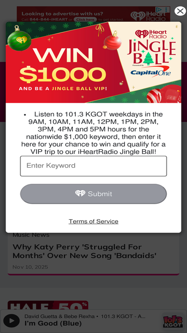 91%101.3 KGOT is ALL THE HITS, ONE STATION featuring Chr/pop radio live from Anchorage, Ak at kgot.com