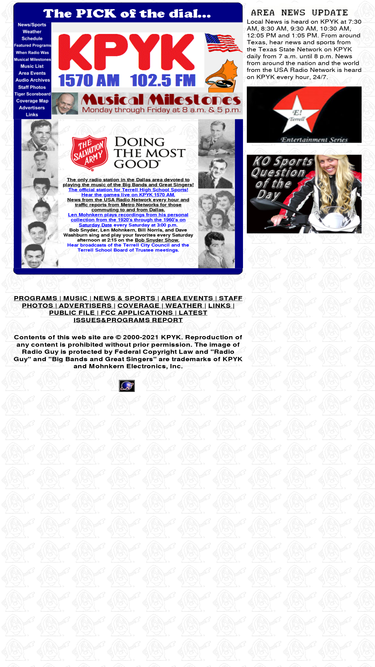 80%music from the big band era, the great singers like frank sinatra, ella fitzgerald, perry como, dean martin, bing crosby, the andrews sisters, boswell sisters. plus news, weather, and sports. broadcast local school board and city council meetings.