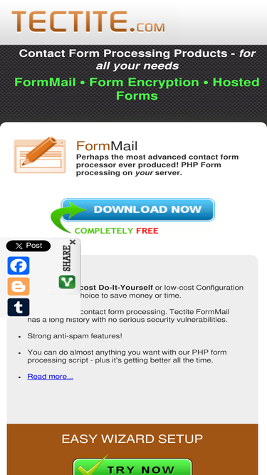 73%formmail: php contact form script. hosted contact form processing. formmailencoder/decoder: encryption software. secure, anti-spam contact form, free d-i-y setup or low-cost wizard.
