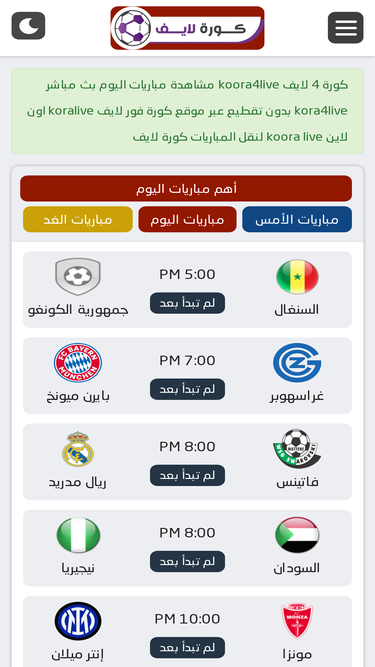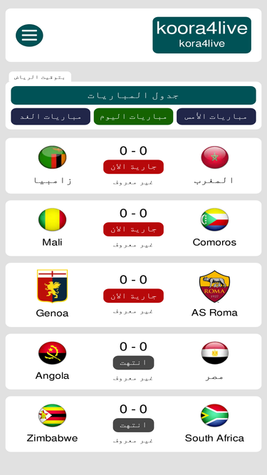 موقع كورة لايف – Koora4Live أصبح محطة أساسية لعشاق كرة القدم الذين يبحثون عن متابعة مباريات kora4live بث مباشر لحظة بلحظة بجودة عالية وبدون انقطاع عبر كورة لايف.